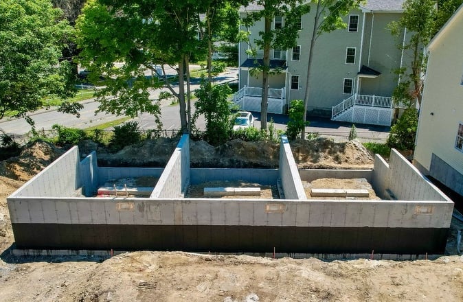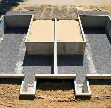 Reinforced concrete footings engineered to properly support foundations and distribute structural loads.